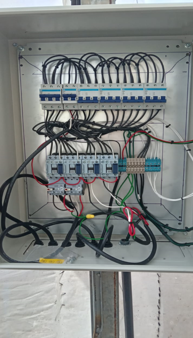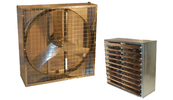 Instalación de 2 Extractores de 17,900 m3/hr y 4 Recirculadores de aire de 7,300m3/hr LB WHITE, red eléctrica, termostato de control de temperatura y humedad, y tablero de energía.